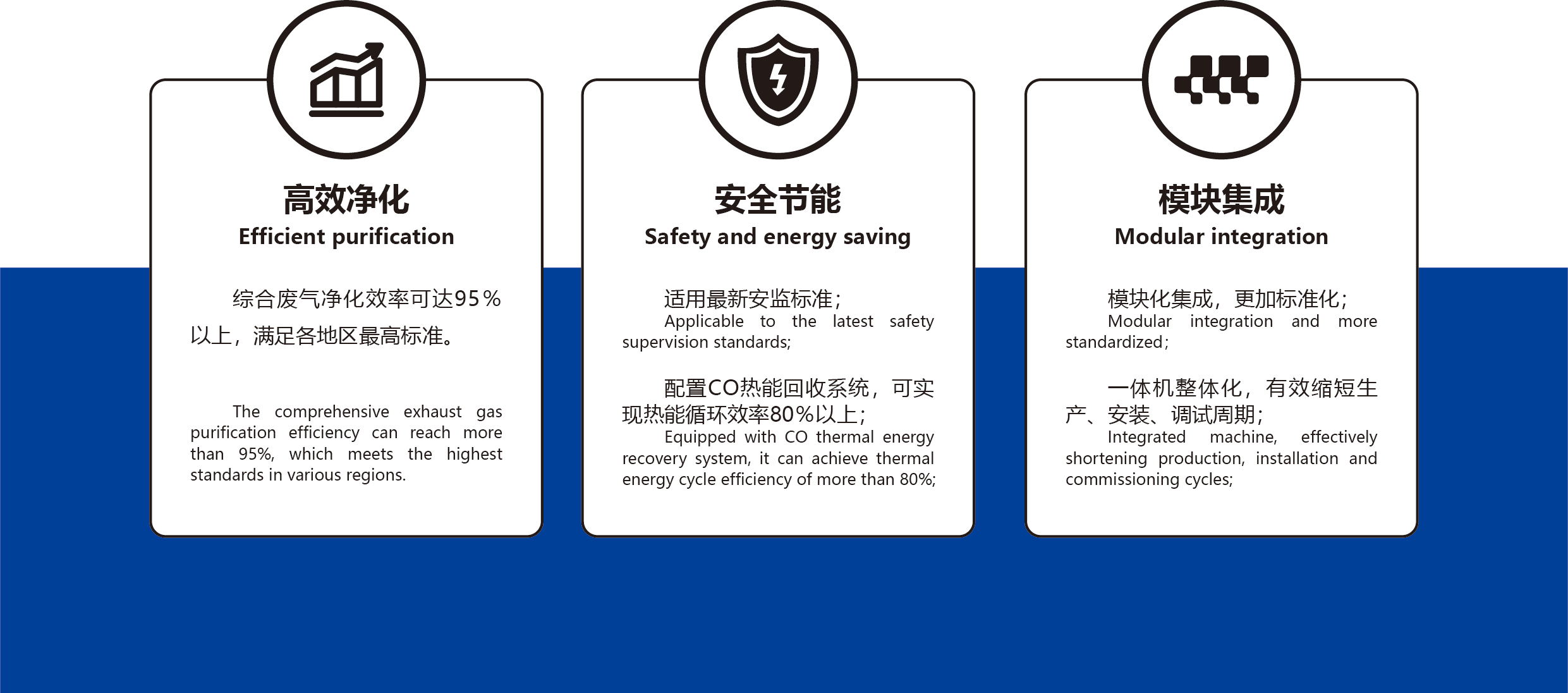 新式一體機為模塊式組裝結構,工藝流程更加合理,能效更穩定,治理效率更高;
